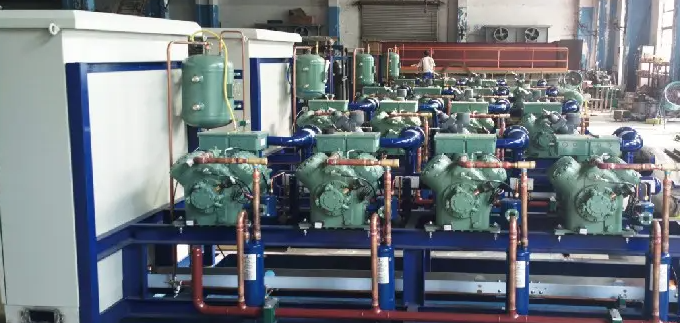 活塞并聯(lián)制冷機組的主機選用半封閉式往復式壓縮機,活塞并聯(lián)機組制冷量區(qū)域大,PLC智能控制系統(tǒng),可以用于中、小型制冷系統(tǒng)中。主要應用:商場超市、陳列柜和中小型冷庫
